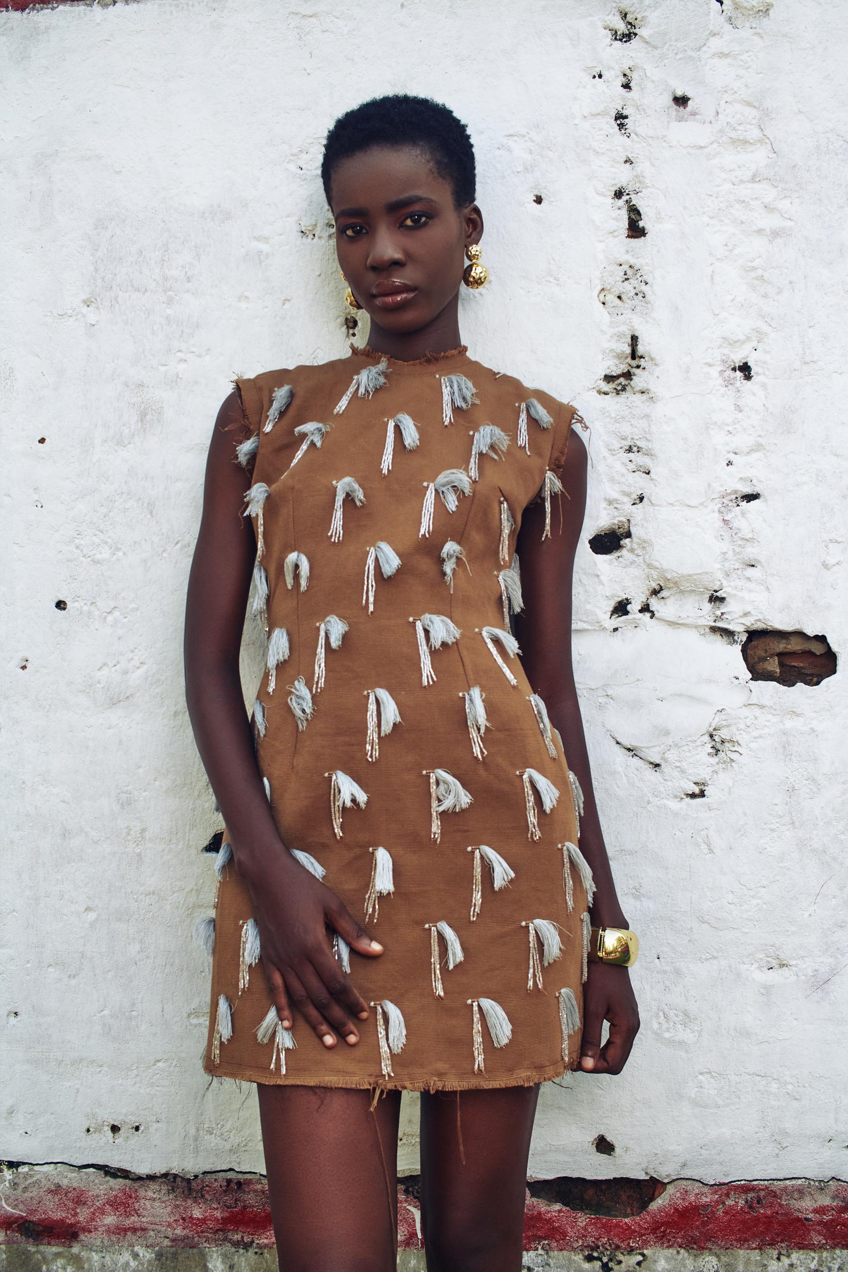 MINI HAND WOVEN ASO OKE DRESS FEATURES HAND EMBROIDERED TASSLES AND FRINGED GLASS BEADS